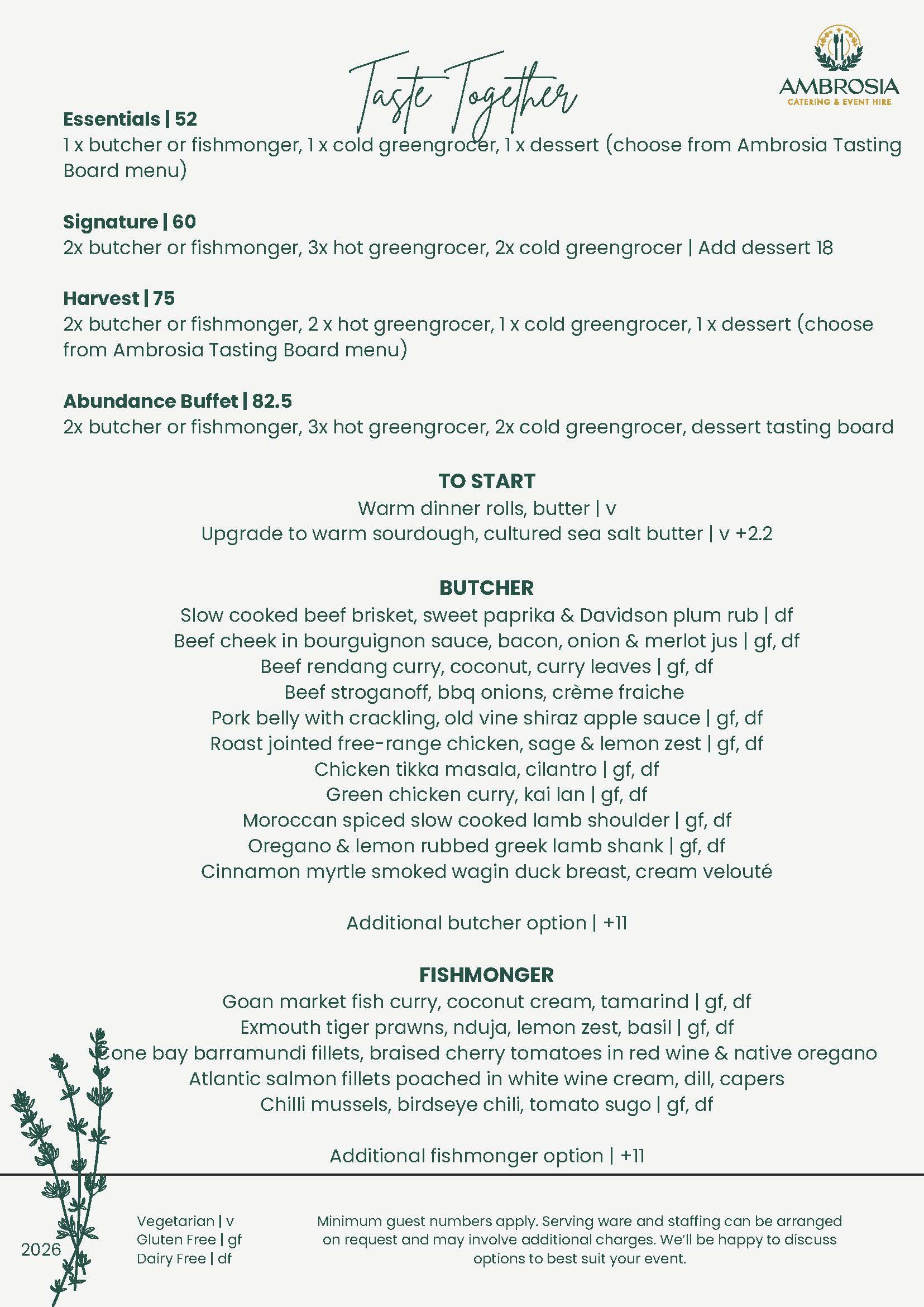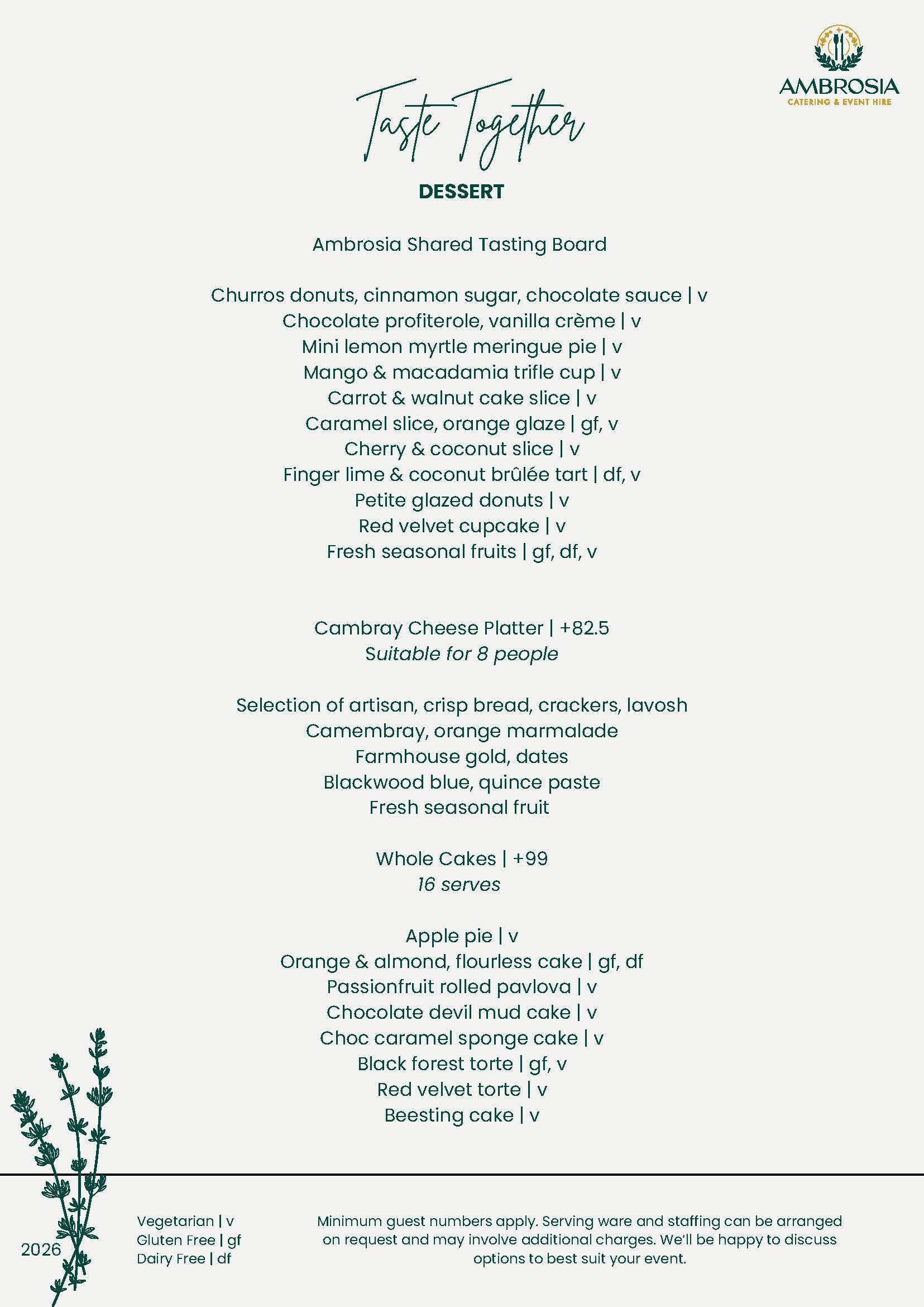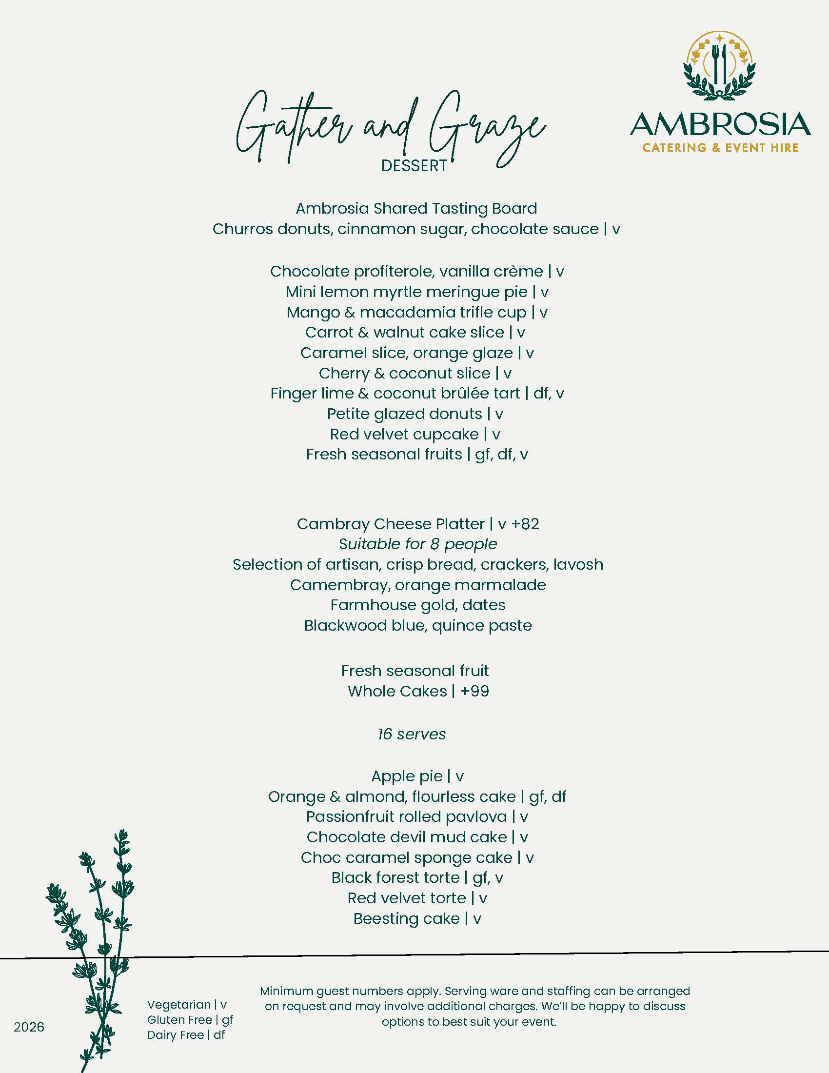 Indulge in tender butcher meats, responsibly sourced seafood, and vibrant hot and cold sides. Complete your feast with an Ambrosia tasting board of sweet treats or a Cambray cheese platter for the perfect finish.