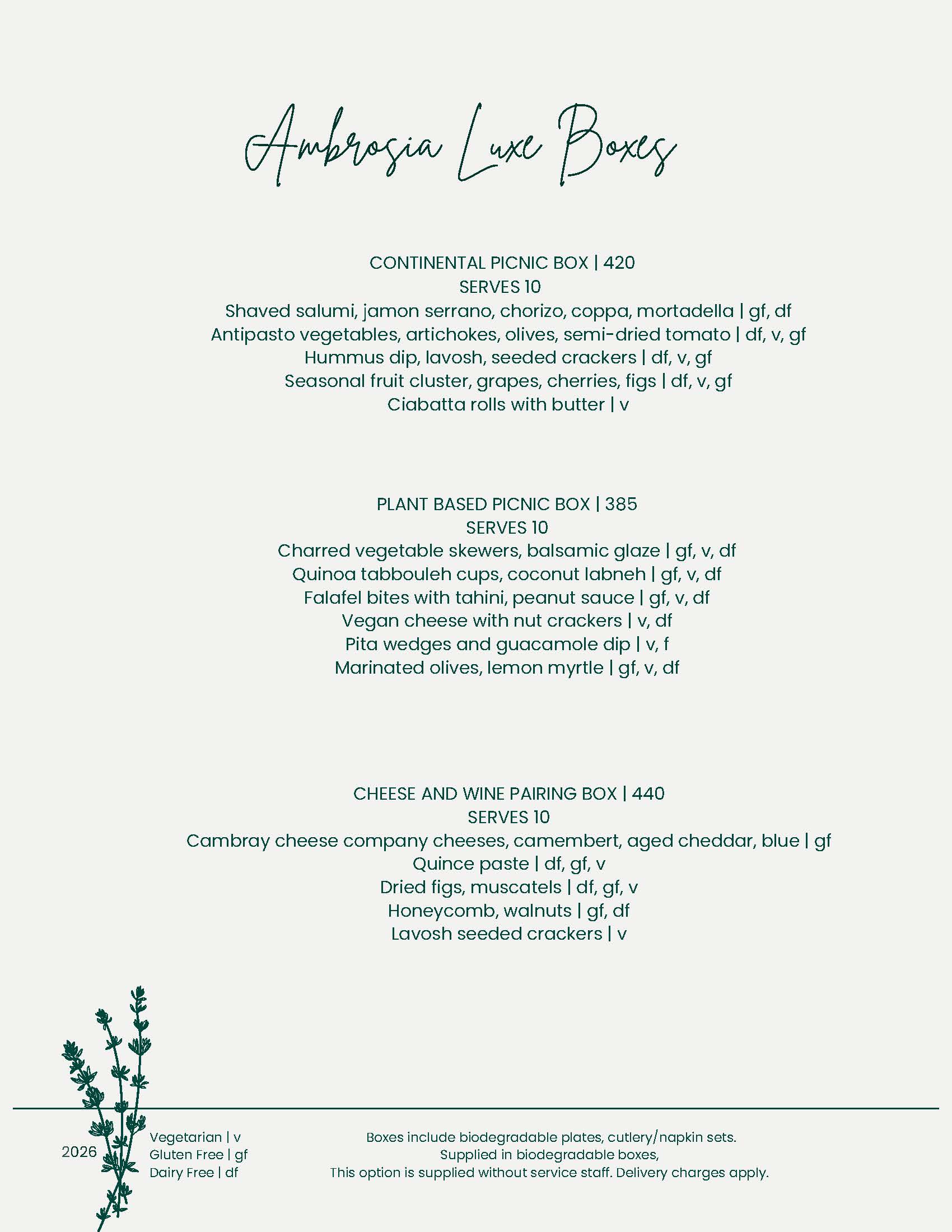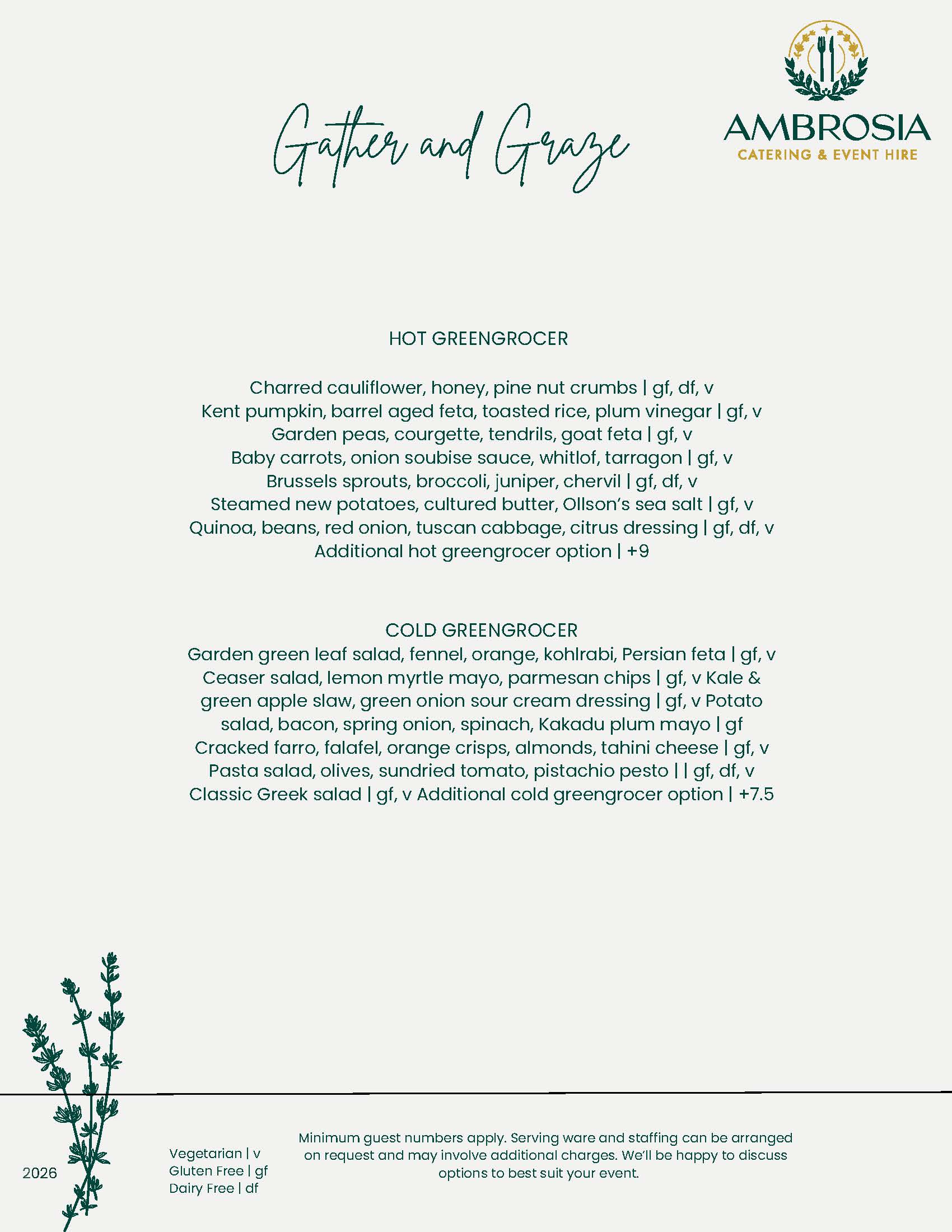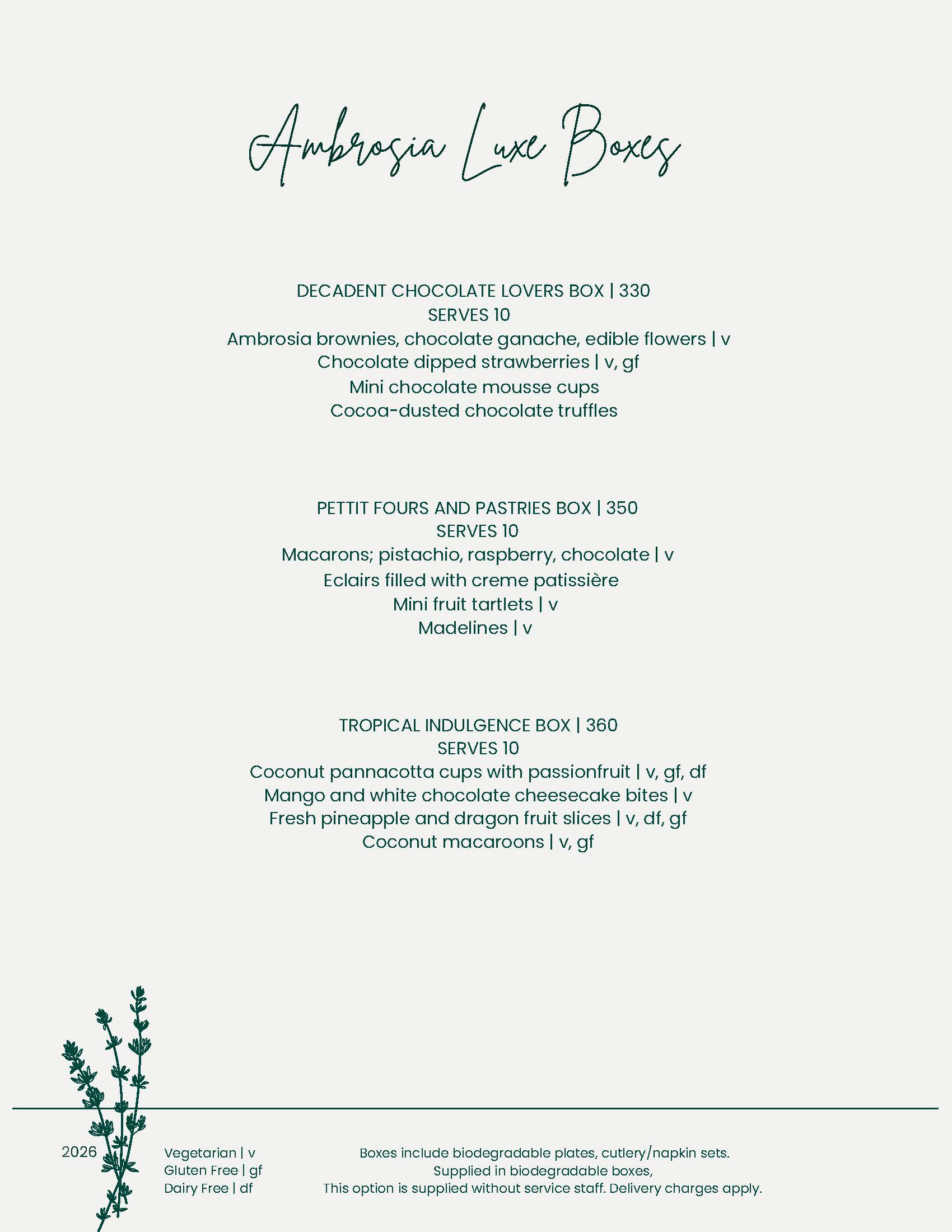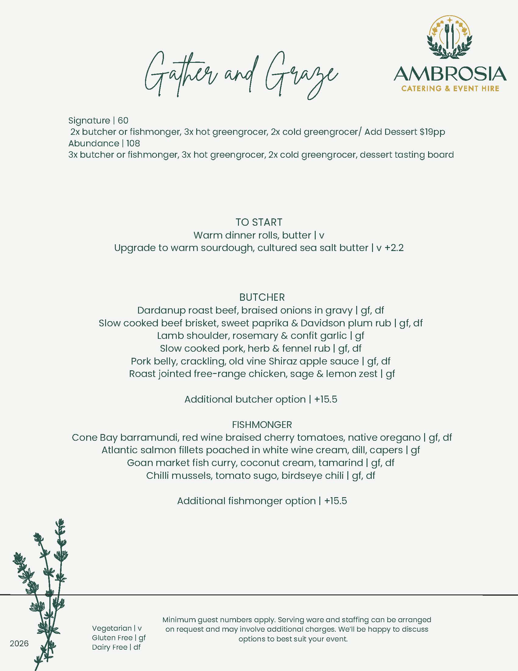 Indulge in tender butcher meats, responsibly sourced seafood, and vibrant hot and cold sides. Complete your feast with an Ambrosia tasting board of sweet treats or a Cambray cheese platter for the perfect finish.