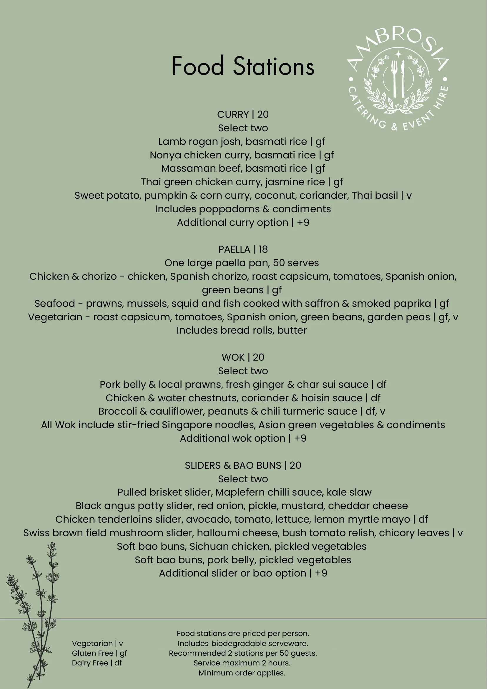We used Ambrosia Catering for our EOY Work Event which included approx. 150 adults and children. Alexandra and Hannah couldn't have been more helpful with all the planning and ensuring that all our dietary requirements were catered to. The staff that attended on the day did an incredible job, and the food was top quality and very fresh. Would definitely recommend them to anyone wanting to ensure their event is 100% stress free - we didn't have to worry about a thing on the day.