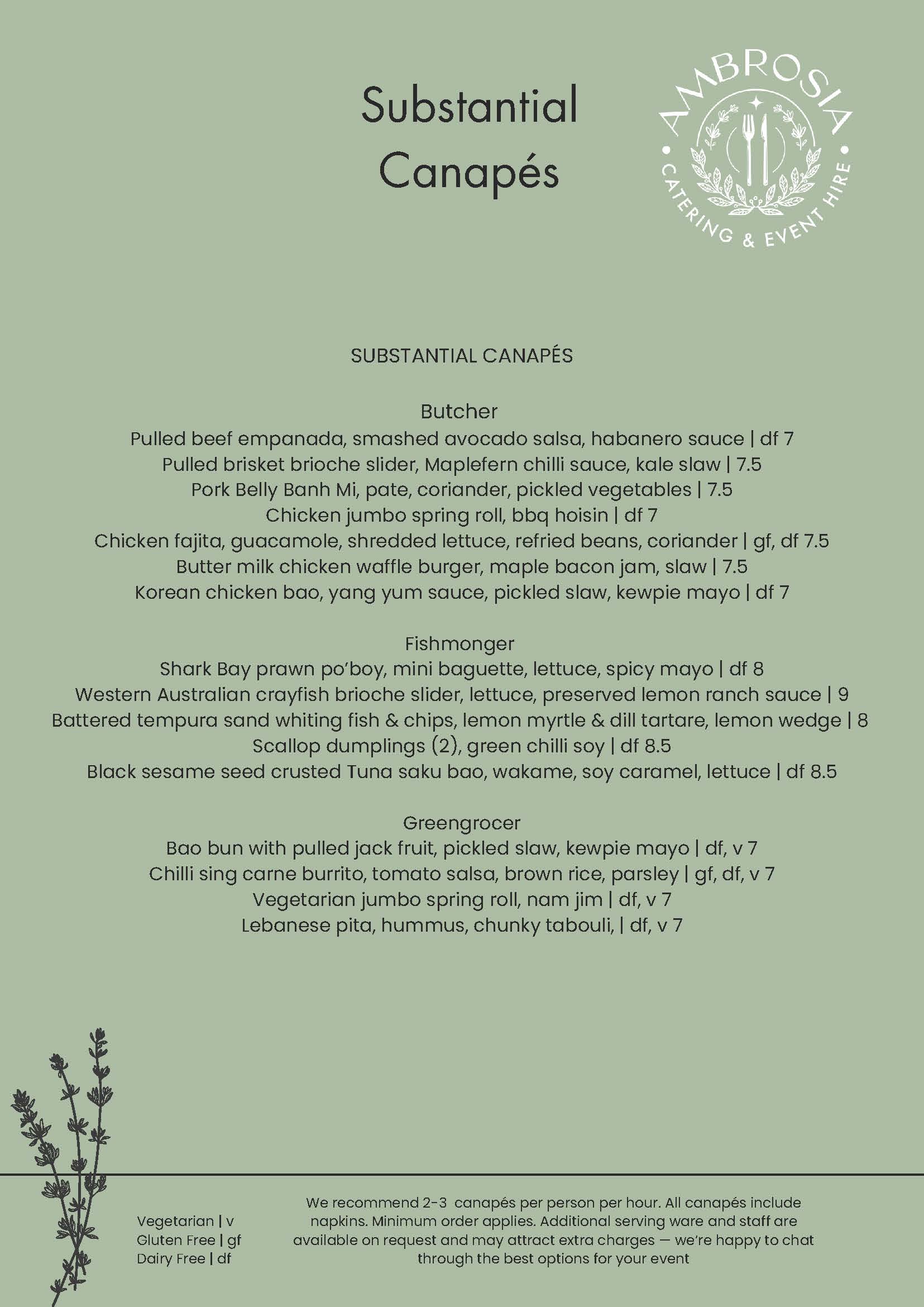 • Canapés & Grazing Stations — stylish, shareable, and perfect for mingling at cocktail-style or informal events.