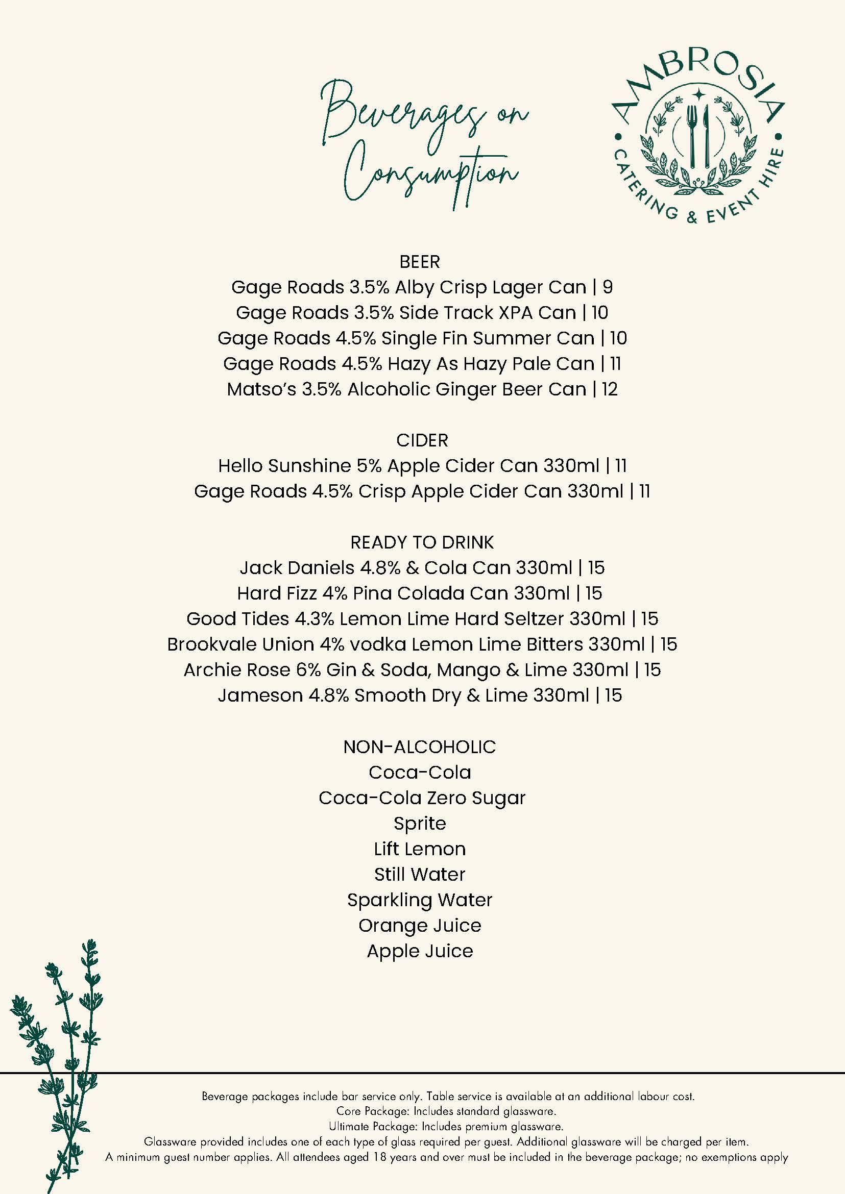 At Ambrosia Catering & Event Hire, our beverage packages are designed to complement every occasion — from relaxed outdoor celebrations to elegant wedding receptions and corporate events. Whether you’re toasting under the stars or dancing the night away, we’ll ensure every glass is filled and every guest is cared for.